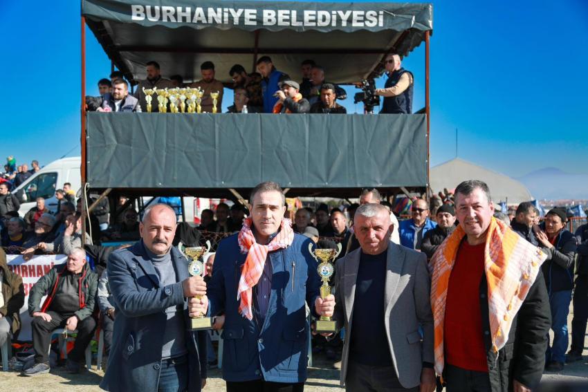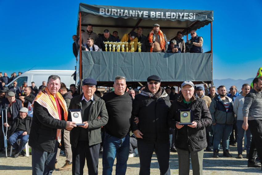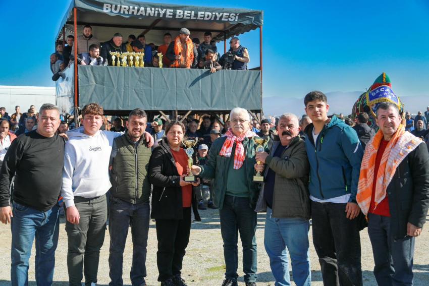 | Burhaniye Belediye Başkanı Ali Kemal Deveciler’in ev sahipliğinde düzenlenen deve güreşlerine, Burhaniye Kaymakamı İlyas Memiş, Gömeç Belediye Başkanı Melih Bağcı, Aydın İncirliova Belediye Başkanı Aytekin Kaya, Burhaniye CHP İlçe Başkanı Aylin Yıldırım, Burhaniye Belediye Başkan Yardımcıları Oktay Erbalaban ve Tamer Midilli, Burhaniye Belediye Meclis Başkan Vekili Tarık Erdil, Burhaniye İlçe Emniyet Müdürü Faik Karabaş, Burhaniye İlçe Jandarma Komutanı Ünal Bayhan, Burhaniye Belediye Meclis Üyeleri Murat Dinçer, Mustafa Kayacık, Yaşar Aydemir ve binlerce güreşseverler katılım sağladı. Burhaniye Deve Güreşi Arenası’nda gerçekleştirilen güreşler, yoğun ilgiyle karşılandı. Toplam 11 kupa müsabakası yapılan güreşlerde dereceye giren develerin sahipleri kupalarını aldı. Kupa mücadelesinde Burhaniye Belediye Başkanlığı, Balıkesir Büyükşehir Belediye Başkanlığı, Burhaniye Kaymakamlığı, Burhaniye Ticaret Odası Başkanlığı, Burhaniye Esnaf ve Sanatkarlar Odası Başkanlığı, Burhaniye Deveciler Derneği (Onursal Başkanı Merhum Kamil Midilli anısına), Burhaniye Çiftçi Malları Koruma Başkanlığı, Burhaniye Şoförler ve Otomobilciler Odası Başkanlığı, Burhaniye Ziraat Odası Başkanlığı, Burhaniye Berberler ve Kuaförler Odası Başkanlığı ve Burhaniye Muhtarlar Derneği kupaları için develer, birbirinden çekişmeli müsabakaların ev sahipliğini yaptığı Burhaniye Güreş Arenası’na çıktı. Başkan Deveciler, güreş arenasında yaptığı konuşma sırasında Burhaniye Güreş Arenası’na katılan binlerce güreşseveri selamladı. Festival kapsamında yapılan deve güreşleriyle, güreş kültürüne ve tarihine verdikleri önemi belirten Başkan Deveciler, “Burhaniye Belediyesi olarak göreve geldiğimizde en iyi güreşi biz yapacağız diye söz verdik. Bu kültürü yaşatıyoruz, yaşatacağız da. Deve güreşlerinin en iyisini, en güzelini Burhaniye’de yapıyoruz çünkü Burhaniye halkı her şeyin en güzelini, en özelini hak ediyor” dedi. |