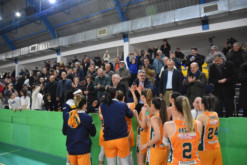 | Türkiye Kadınlar Basketbol Ligi'nde (TKBL) şampiyonluk hedefiyle yoluna yenilgisiz devam eden Ferhatoğlu Edremit Belediyesi Gürespor, 23. hafta mücadelesinde sahasında Urla Belediyesi’ni ağırladı. Baştan sona üstün bir oyun sergileyen Edremit ekibi, rakibini 95-58’lik skorla geçerek galibiyet serisini sürdürdü. Maçı izleyenler arasında Edremit Belediye Başkanı Sn. Mehmet Ertaş, Balıkesir Gençlik ve Spor İl Müdürü Sn. Adem Özalp, Turgutlu Belediye Başkanı Sn. Çetin Akın, Edremit Ticaret Odası Başkanı Sn. Ahmet Çetin, Edremit Belediye Başkan Yardımcısı ve 1966 Edremitspor Başkanı Sn. Cavit Cebeci, Edremit Gençlik ve Spor İlçe Müdürü Sn. Fethi Bilge ve meclis üyeleri de yer aldı. Büyük Gürespor taraftarı ise tribünleri doldurarak takımlarına tam destek verdi. Ferhatoğlu Edremit Belediyesi Gürespor Kulübü Başkanı M. Agah Ferhatoğlu maçın ardından yaptığı değerlendirmede, “Yenilgisiz, rekorlarla ve büyük bir inançla ait olduğumuz yere bir adım daha yaklaştık. Bizi hiçbir zaman yalnız bırakmayan başta Edremit Belediye Başkanımız Sn. Mehmet Ertaş olmak üzere, tüm destekçilerimize ve büyük Gürespor taraftarımıza teşekkür ederiz” ifadelerine yer verdi. Körfezin Melekleri, önümüzde ki hafta rakiplerinin durumuna göre şampiyonluğunu matematiksel olarak da ilan edebilir. Ferhatoğlu Edremit Belediyesi Gürespor, sezonun kalan maçlarında galibiyet serisini devam ettirerek şampiyonluk hedefine namağlup ulaşmayı amaçlıyor. | ||