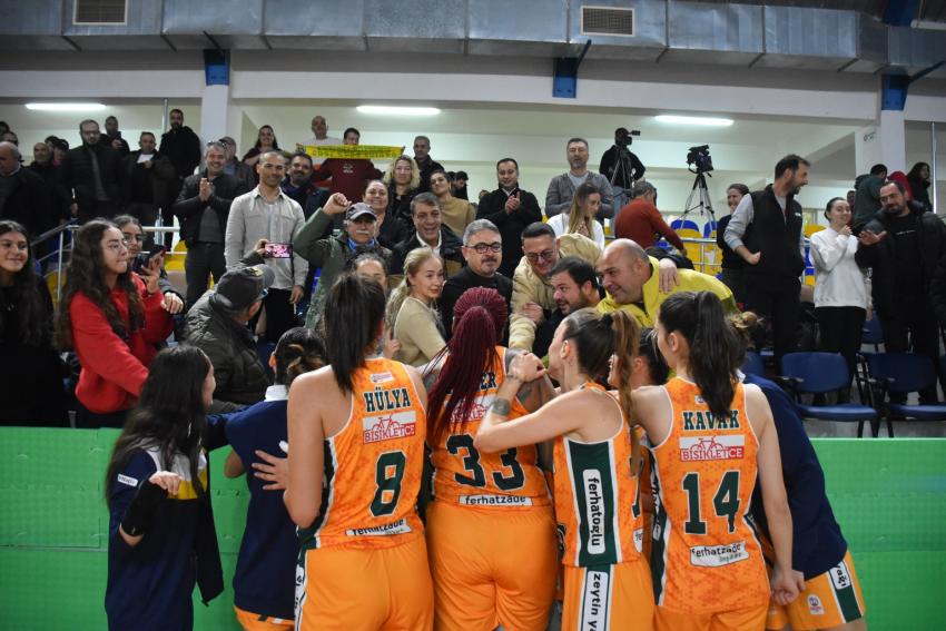 | Türkiye Kadınlar Basketbol Ligi’nde şampiyonluğa emin adımlarla ilerleyen Ferhatoğlu Edremit Belediyesi Gürespor, 12. hafta karşılaşmasında Edirne deplasmanından galibiyetle döndü. Ligin en formda takımı olan Körfezin Melekleri, bu zaferle birlikte yenilgisiz liderliğini perçinleyerek 12’de 12 yaptı. Edirne Mimar Sinan Spor Salonu’nda oynanan karşılaşmada bir ara geriye düşmesine rağmen tecrübesini ve kalitesini ortaya koyan Gürespor, sahadan 76-72 galip ayrılarak sürprize izin vermedi. Deneyimli Başantrenör Alper Durur yönetiminde ki Edremit temsilcisi bu galibiyetle birlikte, Gürespor’un şampiyonluk yolunda bir engeli daha kayıpsız geçti. Edirne’de ki mücadelede takımını yalnız bırakmayan Kulüp Başkanı M. Agah Ferhatoğlu, yaptığı değerlendirmede Gürespor’un 30 yıldır kadın basketboluna hizmet ettiğine vurgu yaparak “Anadolu’da kadın basketbolunun lokomotiflerinden olan Gürespor’umuzun artık ait olduğun yere yani Süper Lige çıkma zamanı geldi. Her hafta bir engeli daha kayıpsız geçiyoruz. Başantrenörümüz Alper Durur ve oyuncu grubumuzla birlik ve beraberlik içinde hedefe yürüyoruz. Edremit Belediyemize, yönetici arkadaşlarıma, emeği geçenlere ve Edremitli basketbol severlere teşekkürlerimi sunuyorum. Hep birlikte başaracağız” dedi. | ||