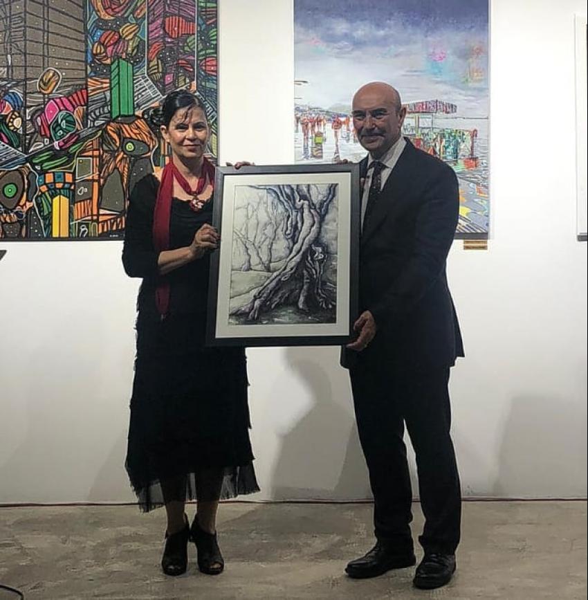 | Serginin açılışına; İzmir Büyükşehir Belediye Başkanı Tunç Soyer, eşi Neptün Soyer, İZELMAN A.Ş. Genel Müdürü Burak Alp Ersen, İzmir Büyükşehir Belediyesi Genel Sekreter Yardımcısı Ertuğrul Tugay, Dernek Başkanı Muzaffer Bektaş (Mona Muzo) dernek yönetim kurulu üyeleri Nilay Çevik, N.Müzeyyen Gökmen, Gülfer Tellaloğlu,  Ayla Erdoğ Çetin, Fikret Güneş, Özlem Kalmaz ve sanatçılar katıldı. Açılışta konuşan İzmir Suluboya Ressamları Derneği Başkanı Muzaffer Bektaş, derneğin adının Uluslararası İzartis Derneği olarak değiştirildiğini duyurdu. Derneğe katkı ve destekleri nedeniyle Başkan Soyer’e teşekkür eden Bektaş, serginin 30 Temmuz akşamına kadar açık kalacağını söyledi. Bektaş, “Bu yarışma ile sanatçılarımız için yeni bir heyecan başlıyor. İnanıyoruz ki devamında, ulusal çapta harika geri dönüşler alacağız. Hem sanat hem de güzel İzmir ve bölgesi adına İzmir Büyükşehir Belediyesi ile birlikte yarışmanın devamında ciddi çalışmalar yapacağız. İzmir Büyükşehir Belediyesi, İzmir Kültür ve Sanat Dairesi Başkanlığı ve İzmir Büyükşehir Belediyesi İZELMAN A.Ş ile İzmir’imiz için derneğimizle birlikte böylesi anlamlı bir projeye imza atmaları, sanat ve sanatçıya destek vermeleri bizleri mutlu etti ve onurlandırdı. Sanatçıların yaşamlarını dahi kazanmakta zorlandıkları bu dönemde kendilerine gönülden teşekkür ediyoruz” dedi. DERECEYE GİRENLERE ÖDÜLLERİ TESLİM EDİLDİ Yarışmanın jürisinde yer alan sanatçılar Bedri Karayağmurlar, Hasan Rastgeldi, Mete Sezgin, ve Turan Enginoğlu, değerlendirmede oldukça zorlandı. Baskı kategorisinde birinciliği Gülnaz Ertan, ikinciliği Mualla Gürle, üçüncülüğü Mehlika Korol, mansiyon ödülünü ise Busen Nijen Alparslan aldı. Suluboya kategorisinde birinci Hakan Güngör, ikinci Hatice Turhan, üçüncü ise Huriye Tamer oldu. Mansiyon ödülü de Zekiye Erçin’e gitti.Yağlıboya kategorisinde ise birincisi Zahit Yıldız, ikincisi Fatma Şehnaz Şimşek, üçüncüsü Şükran Ulucan oldu. Mansiyon ödülü de Birgül Ergün’e verildi. |