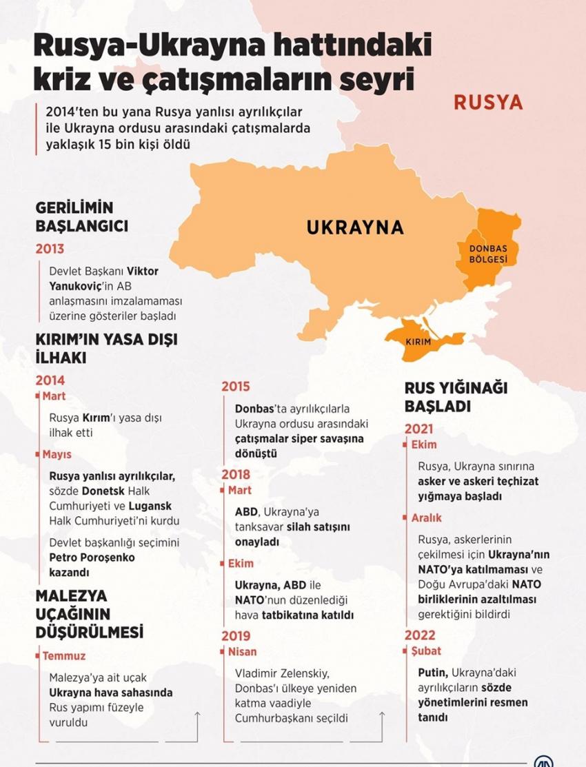 RIA: RUSYA UÇAKLARININ DÜŞTÜĞÜNÜN REDDETTİ RIA Haber Ajansı'nın bildirdiğine göre Rusya, Ukrayna'nın uçaklarını düşürdüğü iddiasını reddetti.  RUSYA, AZAK DENİZİNDE TİCARİ GEMİLERİN HAREKETİNİ DURDURDU Rusya Federal Deniz ve Nehir Taşımacılığı Ajansı, Azak Denizi'nde gemi nakliyelerinin askıya alındığını duyurdu.