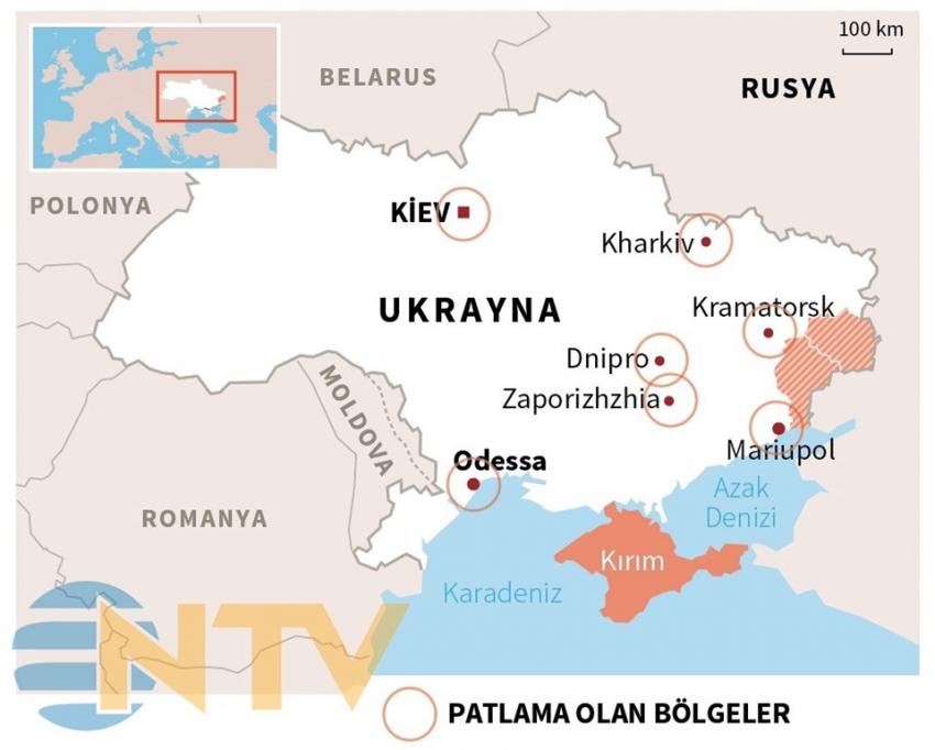 Kiev'in yanı sıra Harkov, Kramatorsk, Mariupol, Mykolaiv ve Odessa kentlerinde yerel saatle 04.50'den sonra art arda patlamalar yaşandı.