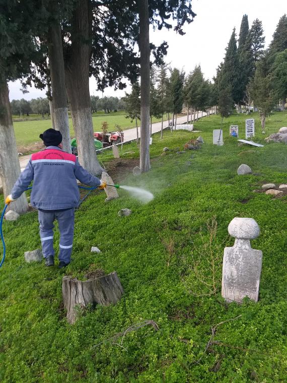 BURHANİYE’DE MEZARLIKLAR İLAÇLANIYOR