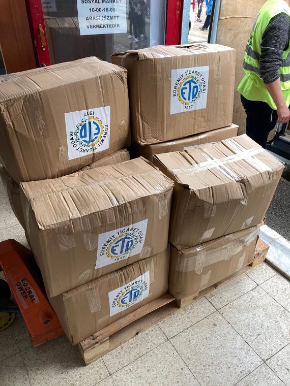 ETO-EDREMIT KAYMAKAMLIĞI İŞ BIRLIĞIYLE YARDIMLAR DEPREMZEDELERE ULAŞIYOR