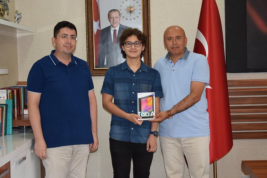 dremit İlçe Milli Eğitim Müdürü Yakup Özbek, Liseye Geçiş Sınavı'nda 0,10'luk dilime girmeyi başararak Edremit ve Körfez birincisi olan 75.Yıl Ortaokulu öğrencisi Hikmet Efe Canikli’yi makamında ağırladı. İlçe Milli Eğitim Müdürü Yakup Özbek, Okul Müdürü Muharrem Yenigün ve değerli ailesi ile İlçe Milli Eğitim Müdürlüğünü ziyarete gelen ve LGS sonuçlarına göre Türkiye'de 0,10'luk yüzdelik dilime girmeyi başaran LGS Körfez şampiyonu Hikmet Efe Canikli’yi tebrik etti. Öğrenciyi tabletle ödüllendiren İlçe Milli Eğitim Müdürü Yakup Özbek, bu başarıda büyük emeği olan okul/kurum yöneticilerine, öğretmenlere ve velilere teşekkür ederek, LGS Körfez şampiyonuna başarılarının devamını diledi.