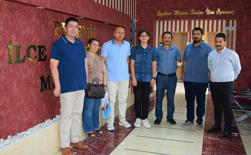 Edremit İlçe Milli Eğitim Müdürü Yakup Özbek, Liseye Geçiş Sınavı'nda 0,10'luk dilime girmeyi başararak Edremit ve Körfez birincisi olan 75.Yıl Ortaokulu öğrencisi Hikmet Efe Canikli’yi makamında ağırladı. İlçe Milli Eğitim Müdürü Yakup Özbek, Okul Müdürü Muharrem Yenigün ve değerli ailesi ile İlçe Milli Eğitim Müdürlüğünü ziyarete gelen ve LGS sonuçlarına göre Türkiye'de 0,10'luk yüzdelik dilime girmeyi başaran LGS Körfez şampiyonu Hikmet Efe Canikli’yi tebrik etti
