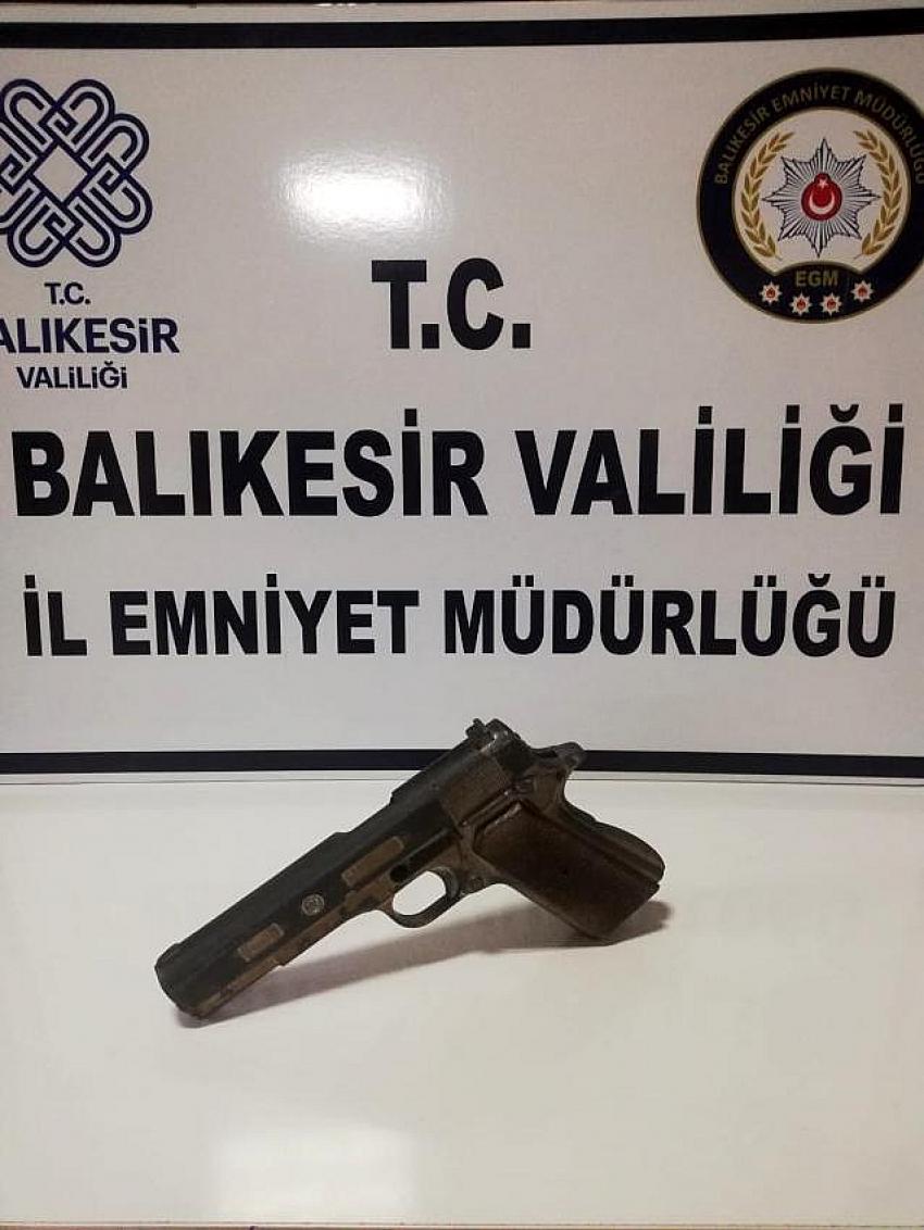 İl Emniyet Müdürlüğü Asayiş Şube Müdürlüğü görevlilerince genel güvenliği ve asayişi sağlamak amacıyla Balıkesir İl Merkezi, Burhaniye, Edremit ve Erdek İlçelerinde 18.06.2021 tarihinde yapılan çalışmalarda 10 aranan şahıs gözaltına alınırken adli makamlara sev edilenlerden 3'ü tutuklandı. Yapılan aramalarda; 3 adet ruhsatsız ateşli silah ve bu silaha ait 8 adet fişek, 2 adet ruhsatsız tüfek ve bu tüfeklere ait adet kartuş ve 1 adet kurusıkı tabanca ele geçirildi.