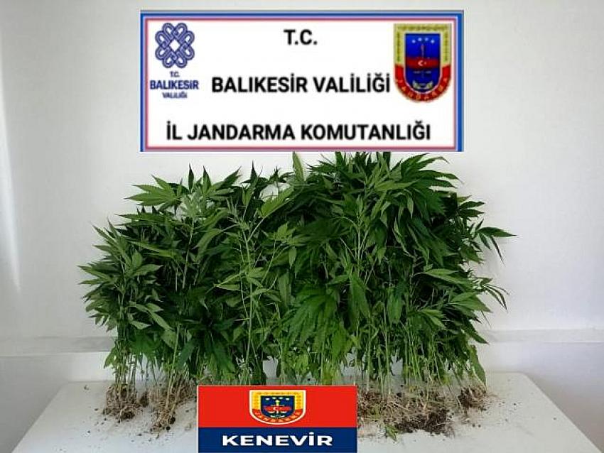 Balıkesir'in Altıeylül ilçesinde kaçak kenevir bitkisi yetiştiren şüpheliye jandarma operasyon düzenledi. Operasyon sırasında 120 kök kenevir bitkisi ele geçirildi.