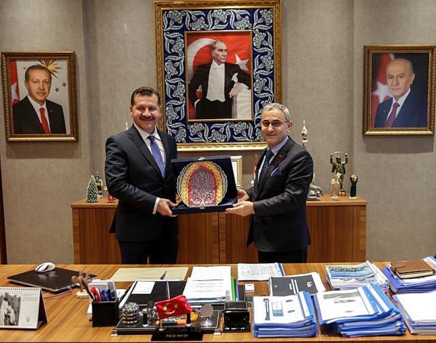 Balıkesir Büyükşehir Belediye Başkanı Yücel Yılmaz, Kütahya Belediye Başkanı Alim Işık'ı, makamında ziyaret etti.