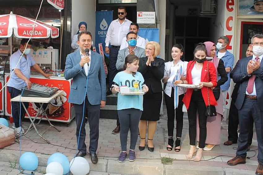 Parti binasının açılışını yapan ve ilçe yöneticileriyle fotoğraf çektiren Babacan daha sonra ilçeden ayrıldı.