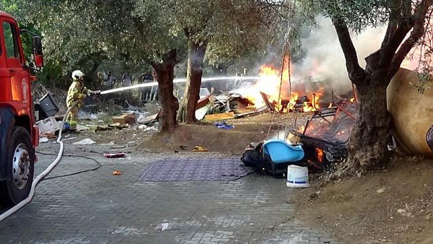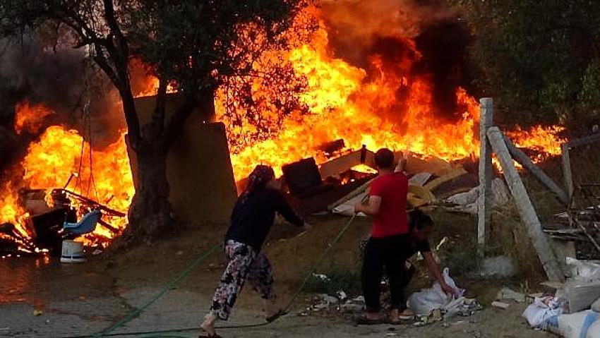 Balıkesir'in Edremit ilçesinde zeytinlik alanda bulunan ikinci el eşyaların bulunduğu depoda çıkan yangın korkuttu. Yangında bir LPG'li araç kısmen zarar gördü. Mahalleli yangına bahçe hortumları ile ilk müdahaleyi yaptı.