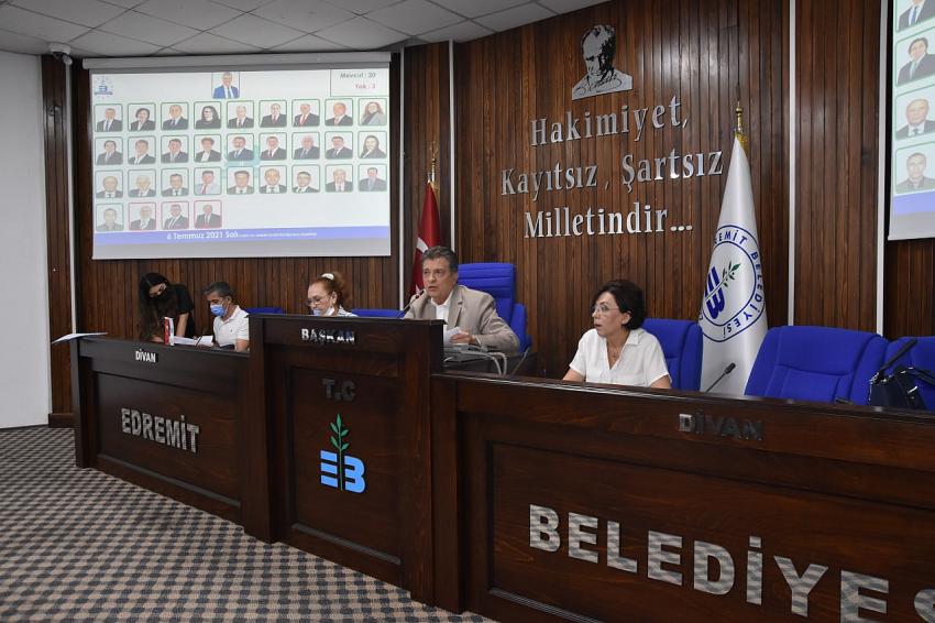 Edremit Belediyesi Temmuz ayı olağan meclis toplantısı belediye meclis salonunda gerçekleşti. 53 gündem maddesi içerisinden bazı maddeler ilgili komisyonlara havale edilirken, tamamı görüşülerek karara bağlandı. Edremit Jeotermal AŞ’nin jeotermal ısı kullanım tarifesinin güncellenmesi talebi Belediye Başkanı Selman Hasan Arslan’ın teklifi ile yaşanan pandemi sürecinde yaşanan sıkıntılar nedeniyle zam yapılmamasına ve önce ki fiyatlarla devam edilmesine karar verildi.
