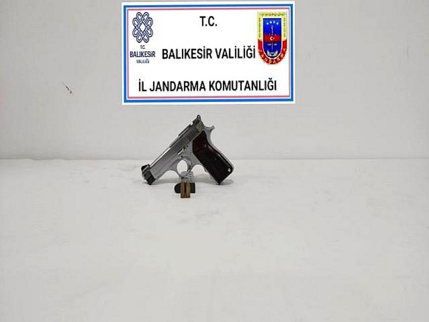 Balıkesir İl Jandarma Komutanlığı ekipleri genel güvenliği ve asayişi sağlamak hedefiyle Altıeylül, Ayvalık, Bandırma, Burhaniye, Edremit, Gömeç, Manyas ve Marmara ilçelerinde 07-08 Temmuz 2021 tarihlerinde yapılan çalışmalarda ve yol aramalarında; çeşitli suçlardan aranan 15 şahsı gözaltına alırken, 1 adet ruhsatsız av tüfeği, 1 kurusıkı tabanca ve 1 adet bıçak ele geçirildi.