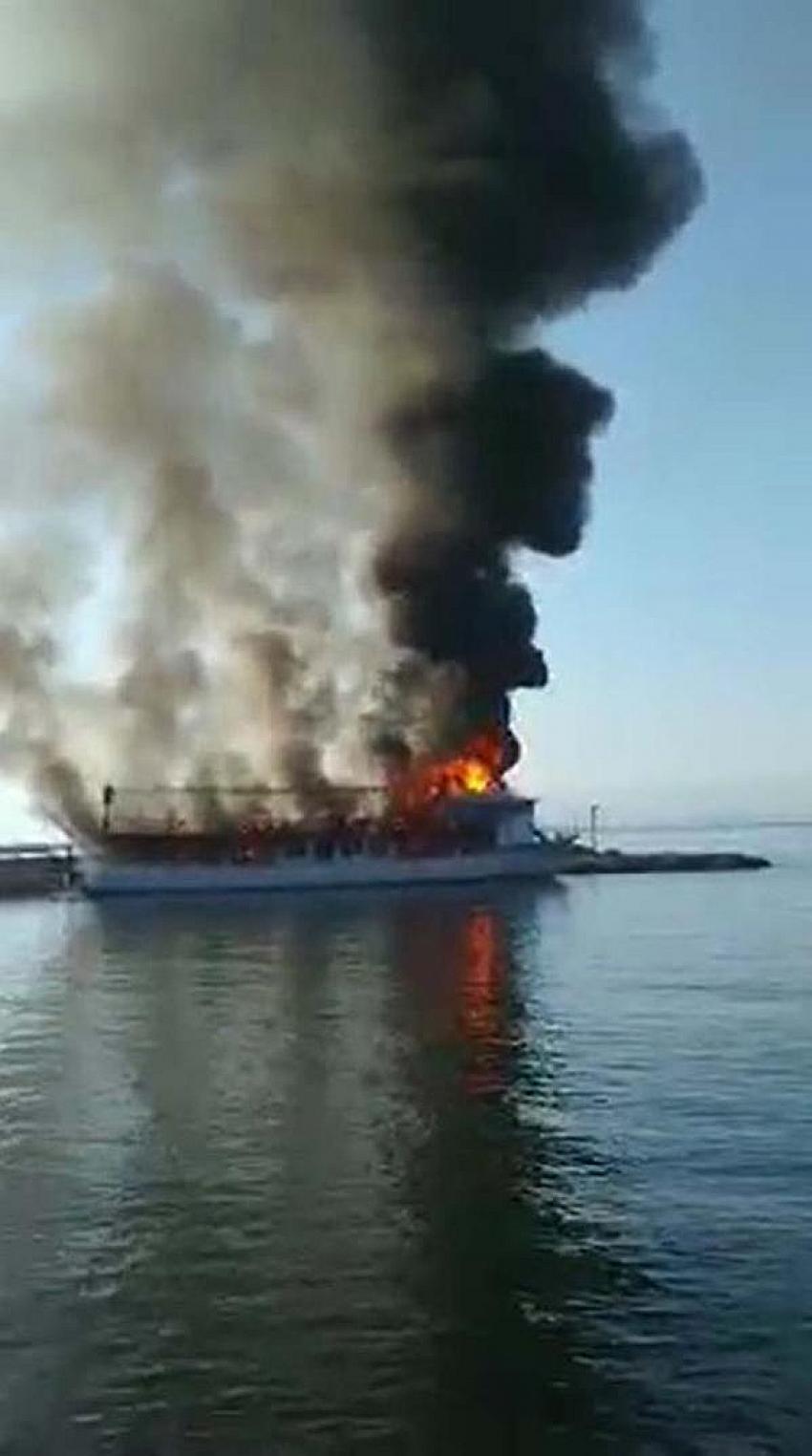Altınoluk'ta iskeleye bağlı olan, 35 metre uzunluğundaki 'Ergün Ağa' isimli tur teknesinde, saat 06.30 sıralarında yangın çıktı. Elektrik panosundan kaynaklandığı sanılan yangında alevler, kısa sürede büyüdü ve teknenin yer yerini sardı. Sahildekiler ise kısa süreli panik yaşadı. İhbarla gelen itfaiye ekiplerinin müdahalesiyle söndürülen yangında tekne, kullanılamaz hale geldi. Tur teknesinin makinisti, "Ben ve diğer personel teknede yatıyorduk. Dumanlar, sonra da alevler yükselmeye başlamış. Bizim personel fark etmiş. Hemen tekneden çıktı. Bu sırada yangın büyüdü. Elektrik panosundan çıktığını tahmin ediyoruz" dedi.