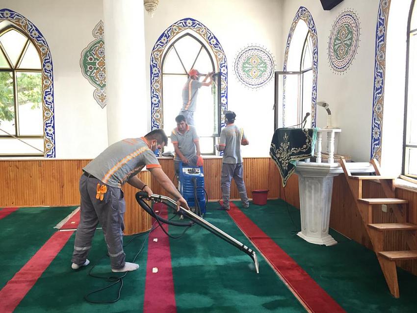 Ayvalık Belediyesi Temizlik İşleri Müdürlüğü ekipleri, kent genelinde bulunan tüm ibadethanelerde Kurban Bayramı öncesi dip bucak temizlik yaptı.
