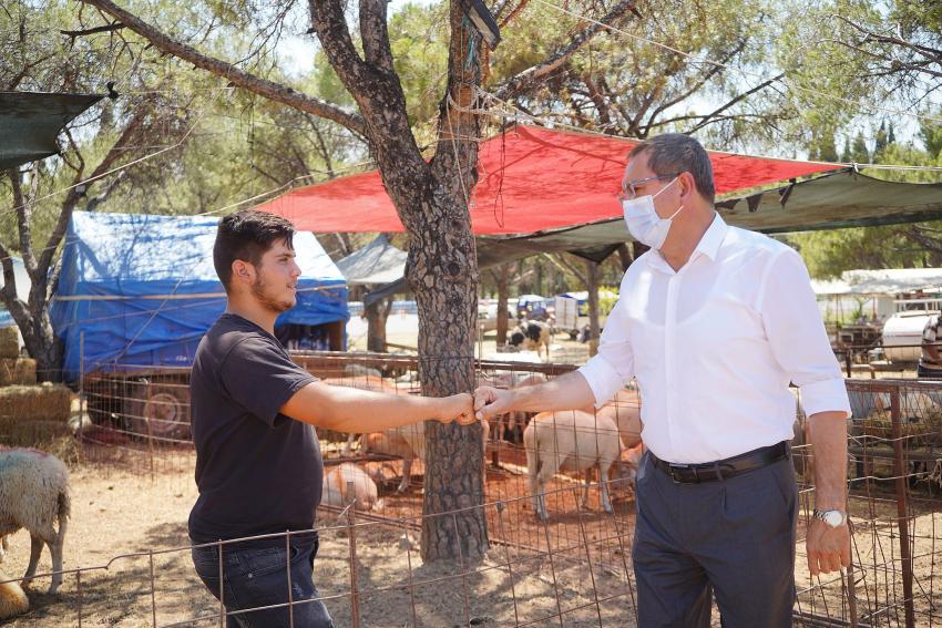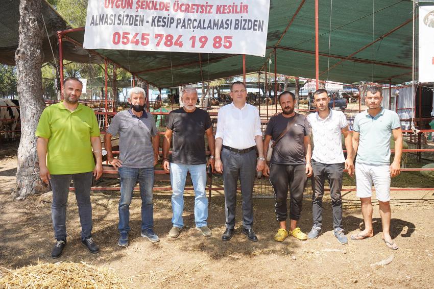 Ayvalık Belediye Başkan Mesut Ergin, Kurban Bayramı öncesi, Ayvalık Kabristanı karşısında kurulan kurban satış yerini ziyaret etti.