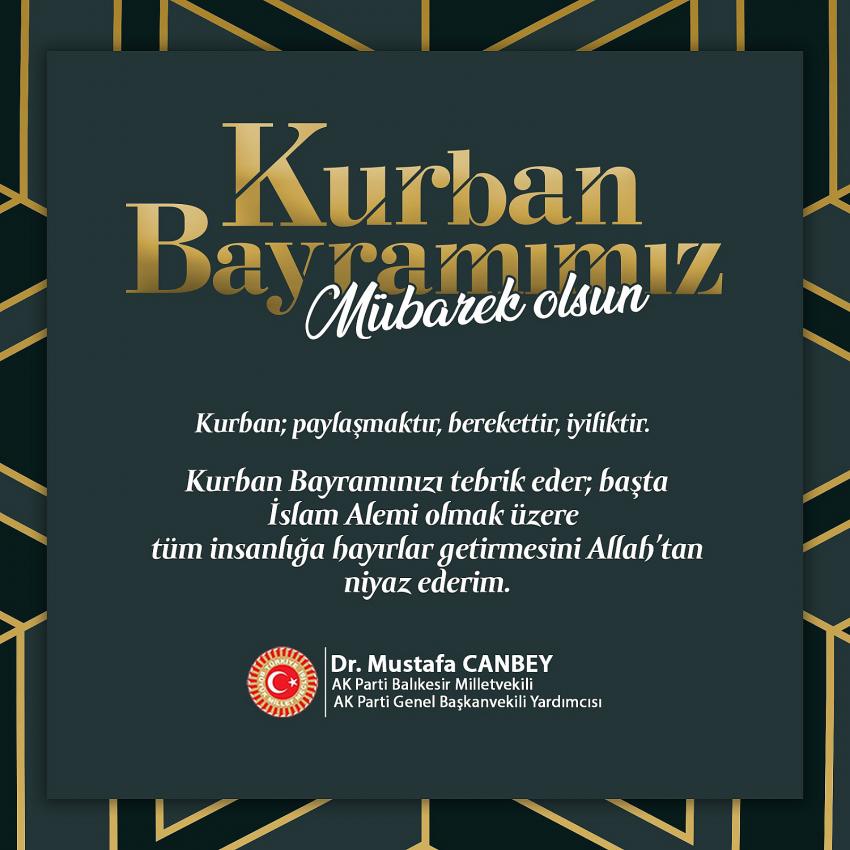 AK Parti Balıkesir Milletvekili Mustafa Canbey, Kurban Bayramı dolayısıyla bir kutlama mesajı yayınladı.