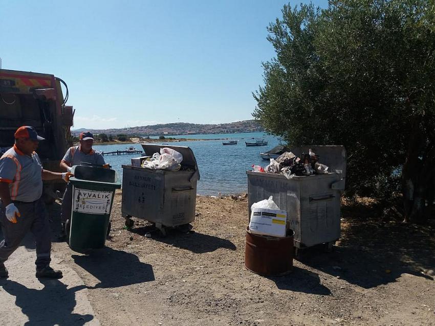 70 bin nüfuslu kentin temizliğine göre çalışma saatlerini düzenleyen, 5 bin 500 adet çöp konteyneriyle sıkıntısız çöpleri alan ekipler bugünlerde günlük 240 ton kapasitenin üzerine çıktılar. Ayvalık Belediye Başkanı Mesut Ergin, bayramla birlikte ilçe nüfusunun neredeyse on katına çıktığını hatırlatarak, yine de temizlik işleri ekiplerinin özveriyle çalıştığını ifade etti.