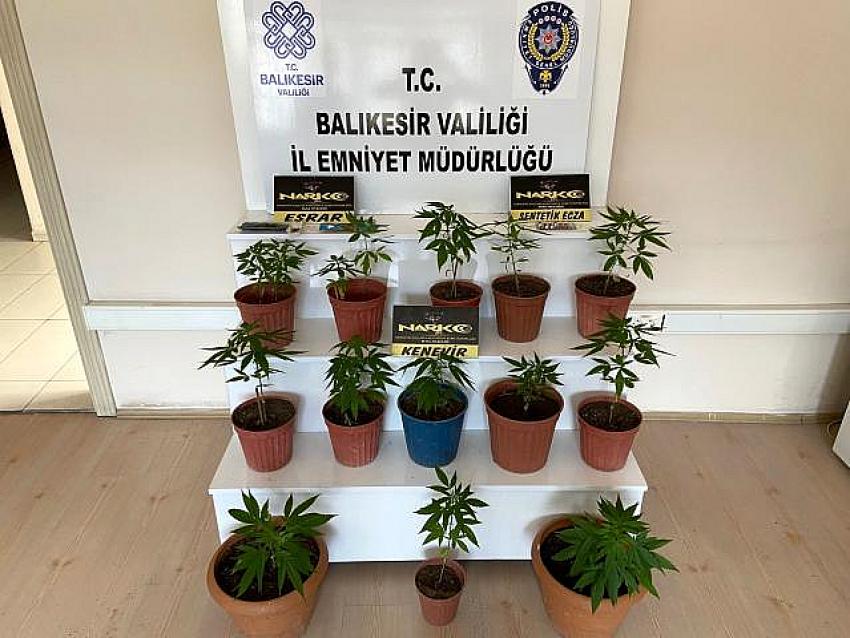 Narkotik Suçlarla Mücadele Şube Müdürlüğü ekipleri uyuşturucu madde ticaretini, kullanımını ve sokak satıcılarının faaliyetlerini önlemeye yönelik olarak 17.07.2021-25.07.2021 tarihleri arasında yapılan 34 çalışmada; Balıkesir İl Merkezi, Ayvalık, Bandırma, Edremit, Erdek, Gömeç ve Susurluk İlçelerinde 46 şahıs yakalanmış, 2 şahıs sevk edildiği adli makamlarca tutuklanırken, 44) şahıs ise haklarında yapılan adli işlemler neticesi serbest bırakıldı. Olaylarla ilgili yapılan aramalarda; 42,81gram metamfetamin, 432,45 gram esrar, 57,08 gram bonzai, 130 adet sentetik ecza hap, 16 adet ecstasy hap, 83 adet hint keneviri bitkisi, 25,31 gram hint keneviri tohumu, 1 adet LSD ve 2 adet hassas terazi ele geçirildi.