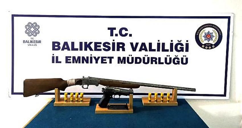 Balıkesir İl Emniyet Müdürlüğü Asayiş Şube Müdürlüğü görevlilerince genel güvenliği ve asayişi sağlamak maksadıyla il merkezi, Ayvalık, Balya, Burhaniye, Edremit, Erdek, Gömeç, Gönen ve Susurluk ilçelerinde 30.07.2021 tarihinde yapılan çalışmalarda 44 aranan şahıs gözaltına alınırken, adli makamlara sevk edilen 17 şahıs tutuklandı. Yapılan aramalarda 7 adet ruhsatsız tüfek, 42 fişek, 5 adet ateşli silah ve bu silaha ait 30 adet fişek ve 6 adet kurusıkı tabanca ve bunlara ait 36 adet fişek ele geçirildi.