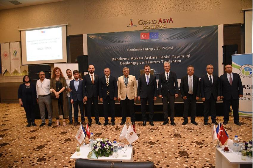 Avrupa Birliği ile Çevre ve Şehircilik Bakanlığının destekleriyle, Balıkesir Büyükşehir Belediyesi iştiraklerinden Balıkesir Su ve Kanalizasyon Genel Müdürlüğü (BASKİ) tarafından hayata geçirilecek olan “Bandırma Entegre Su Projesi” kapsamında inşa edilecek “Bandırma Atık su Arıtma Tesisi”nin başlangıç ve tanıtım toplantısı, Bandırma’da gerçekleştirildi. Toplantıya, Balıkesir Büyükşehir Belediye Başkanı Yücel Yılmaz’ın yanı sıra; AK Parti Balıkesir Milletvekili Yavuz Subaşı, Bandırma Belediye Başkanı Tolga Tosun, Avrupa Birliği ve Dış İlişkiler Genel Müdürü IPA Çevre Program Otoritesi Başkanı Bülent Üncü, BASKİ Genel Müdürü İzzet Günal ve yüklenici firma yetkilileri katıldı.