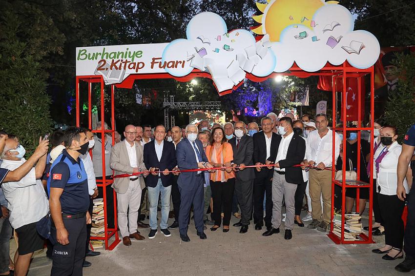 “Bin yıllık tarihten, bin yıllık kitaba” sloganıyla bu sene 2.’si düzenlenen Burhaniye Kitap fuarı kapılarını binlerce sanatsevere açtı. CHP Genel Başkan Yardımcıları Oğuz Kan Salıcı, Veli Ağbaba, TBMM Başkan Vekili Haydar Akar, Ankara Milletvekili Prof. Dr. Haluk Koç, CHP İstanbul Milletvekili Akif Hamzaçebi, Milletvekilleri ve Belediye Başkanlarının kestiği kurdele töreniyle açılan fuar 5 gün süreyle sanatseverlere ev sahipliği yapacak.