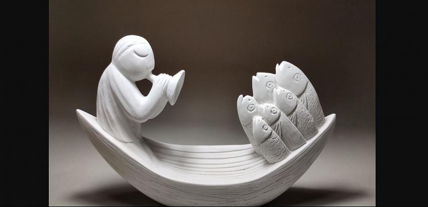 Polonya’dan geldim. Benim heykelimin adı 'Balık Adam'. Eser, insanın balık ve halatla uyumunu sembolize ediyor.