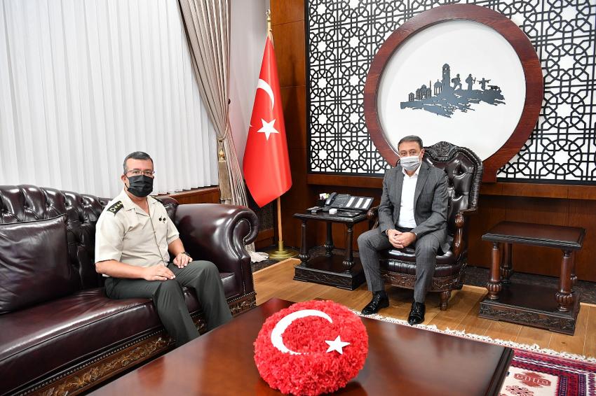 Balıkesir'de Görevi sona eren Kara Astsubay Meslek Yüksek Okulu Komutanı Topçu Albay Yüksel Kolcu Vali Hasan Şıldak’a veda ziyaretinde bulundu.