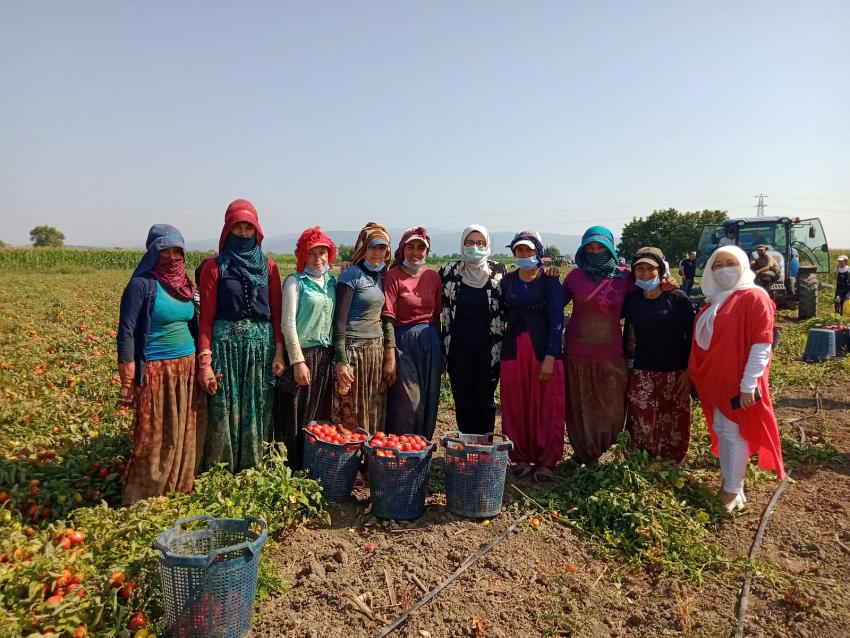 Göbel Mahallesinde tarlada domates toplayan işçileri ziyaret eden, onlara limonata ikram eden Uygur, işçilerle birlikte domates topladı.