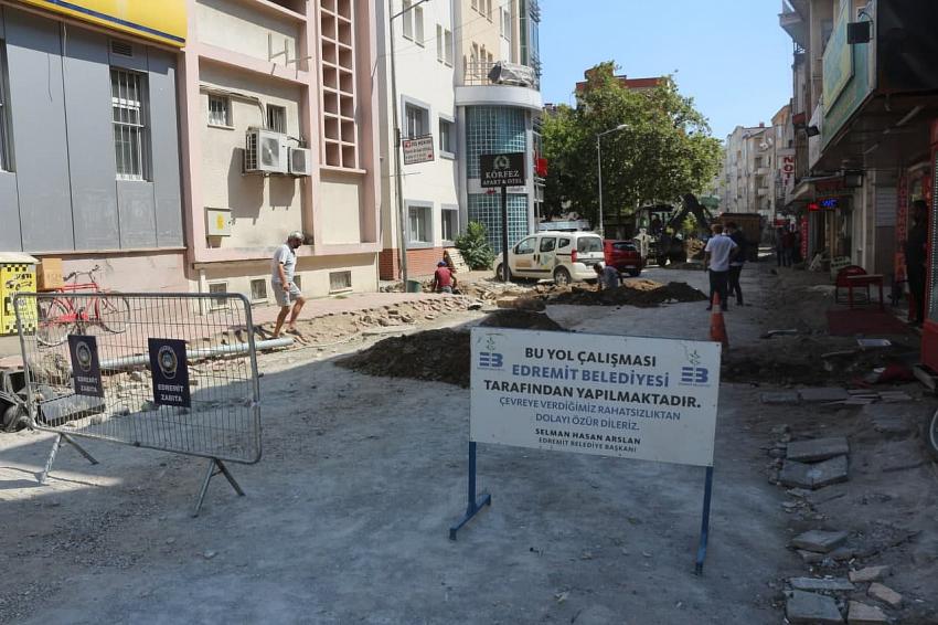Edremit Belediyesi tarafından doğalgaz döşeme çalışmaları nedeniyle kazılan yollar hızla yapılmaya devam ediyor.
