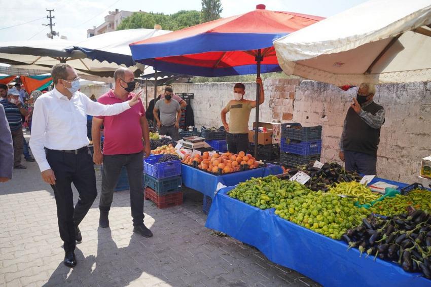 Ayvalık Belediye Başkanı Mesut Ergin, Altınova Pazaryeri'nde pazarcı esnafıyla ve alışveriş yapan vatandaşlarla sohbet etti. Dertlerini dinledi, sıkıntıları paylaştı, belediye olarak yapılabilecek hizmetler üzerine onlardan gelen görüş ve önerileri not aldı.