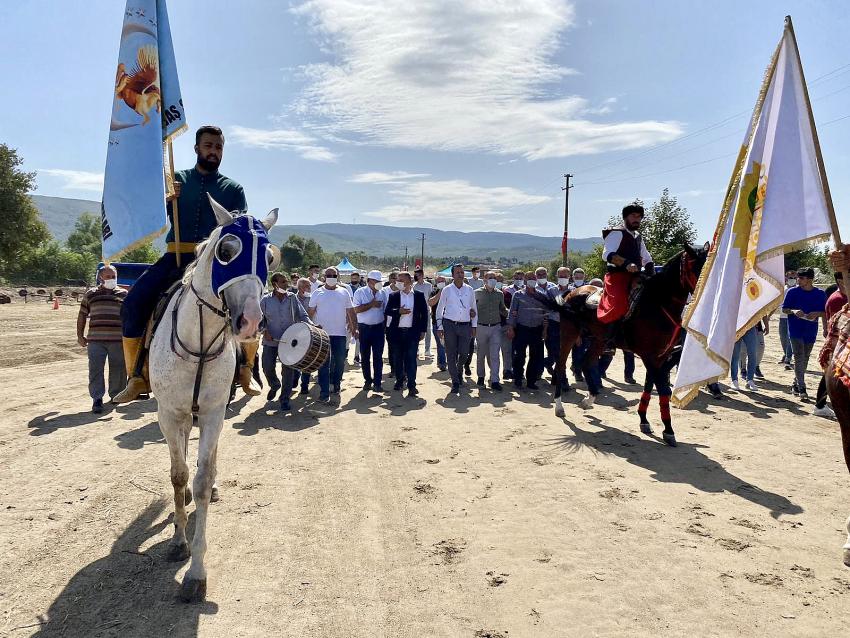 Davul, zurna eşliğinde atlı ekiplerle ve coşkulu bir kalabalıkla karşılanan Milletvekili Mustafa Canbey, tribünleri tek tek gezerek katılımcıları selamladı.