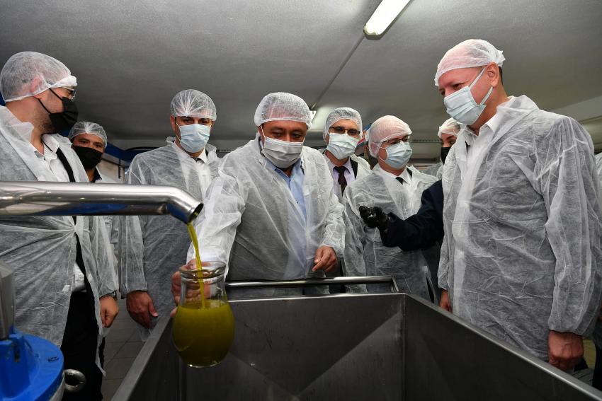 Vali Hasan Şıldak zeytincilik sektörünün önemli firmaları arasında yer alan Ayvalık Köklü Zeytincilik İşletmesini ziyaret etti. Ziyarette yılın ilk erken hasat zeytininden zeytinyağı elde edilmek üzere sıkım yapıldı.