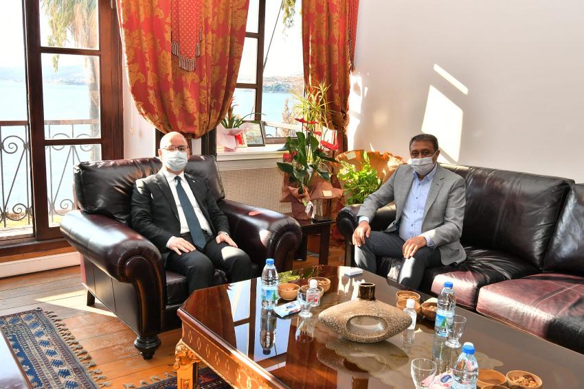 Vali Hasan Şıldak, yakın zaman önce göreve başlayan Ayvalık Kaymakamı Hasan Yaman ve Gömeç Kaymakamı Ahmet Soley'e hayırlı olsun ziyaretinde bulundu.