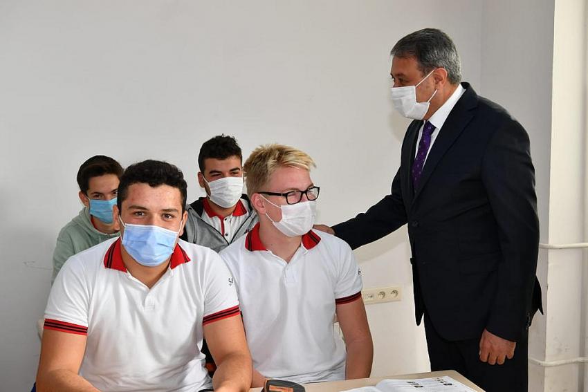 Sınıfları gezerek öğrencilerle sohbet eden Vali Şıldak öğrencilerden derslerine sıkı bir şekilde çalışmalarını istedi.