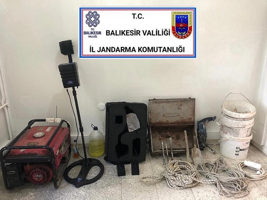 Balıkesir İl Jandarma Komutanlığınca, kültür ve tabiat varlıkları kaçakçılığına yönelik yapılan istihbari çalışmalar neticesinde, İvrindi ilçesinde (4) şüpheli şahsın kaçak kazı yapacağı bilgisi alınması üzerine bölgede yapılan kontrollerde (4) şüpheli kazı yaparken suçüstü yakalanmıştır. Şüphelilerle birlikte (1) adet jeneratör, (1) adet dedektör, (1) adet USB tipi yılan kamera ve (14) adet kazı malzemesi ele geçirilmiştir. Ele geçen malzemelere el konularak şüpheliler hakkında yasal işlemlere başlanılmıştır.