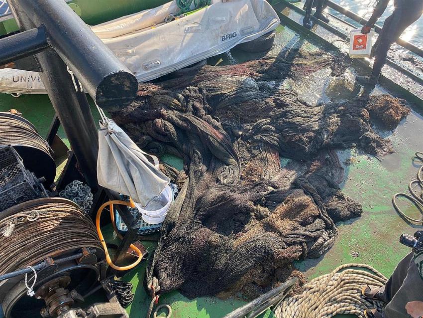 Balıkesir Büyükşehir Belediyesi, Çanakkale 18 Mart Üniversitesi ile Balıkesir İl Tarım ve Orman Müdürlüğünün iş birliğiyle yürütülen 'Hayalet Ağların Temizlenmesi Projesi' kapsamında Bandırma İlçesi Dutlimanı Mahallesi açıklarında yaklaşık 5 dönümlük alanı kaplayacak büyüklükte hayalet ağ çıkarıldı.