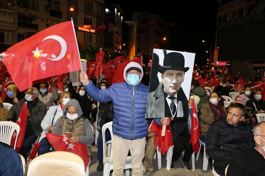 Gündüz Cumhuriyet Meydanı’nda Atatürk Anıtı’na Çelenk koyma töreninin ardından akşam, Burhaniye Cumhuriyet Meydanı’nda  gerçekleştirilen Türkü Akbayram konserinde soğuk havaya rağmen 7’den 70’e yüzlerce insan meydanda toplandı. Konser alanında Zabıta Müdürlüğünce bayrak dağıtımı yapılırken, hep bir ağızdan özgürlük şarkıları söylendi.