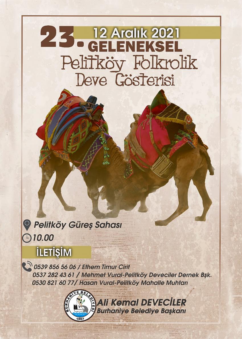 Geleneksel olarak her sene yapılan ve önceki yıl pandemi nedeniyle yapılamayan deve güreşleri bu yıl 23. kez yapılıyor. Burhaniye Belediyesi ve Pelitköy Deveciler Derneğinin iş birliğiyle yapılan etkinlikte, Burhaniye, Edremit, Ayvalık, Havran gibi ilçelerin yanı sıra diğer illerden de develer katılacak.