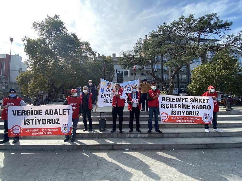 DİSK Genel-İş Balıkesir Şube Başkanı Hüseyin Hilmi Ovalı yaptığı açıklamada ilk olarak belediye çalışanlarının kadro durumu hakkında konuştu. Ovalı açıklamasında şunları söyledi;