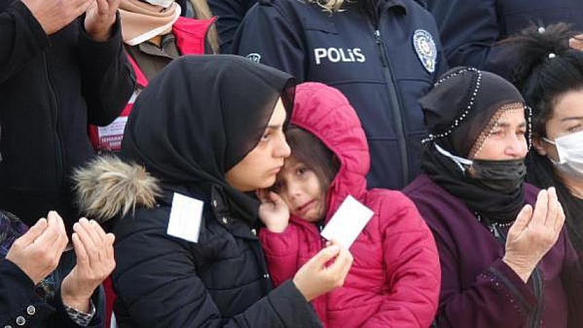 Törende şehit Abdulkadir Güngör'ün tabutuna sarılan eşi Merve Güngör, uzun süre gözyaşı döktü, bu sırada kızları Almila Güngör (3) de annesine sarılarak ağladı.