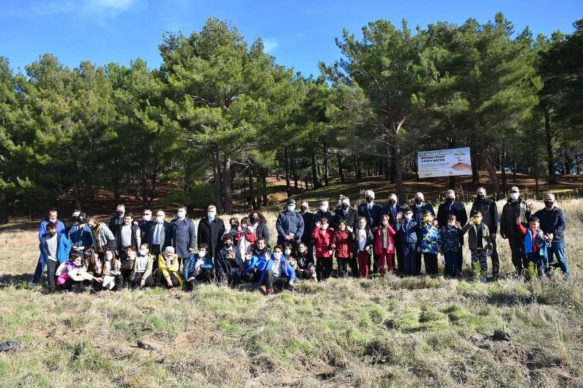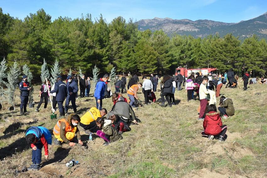 Türkiye genelinde “Geleceğe Nefes Ol” sloganıyla milyonlarca fidan dikiliyor. Milli Ağaçlandırma Günü olarak adlandırılan 11 Kasım gününde Edremit’te yüzlerce fidan toprakla buluştu. İlçe Orman İşletme Müdürlüğü tarafından Kazdağları’nın eteklerinde ki Edremit’in Kalkım yolu üzerindeki “Talim Alanı” gölgesinde gerçekleştirilen etkinlikte; defne, mavi selvi ve fıstık çamı olmak üzere 300 tane fidan dikildi.