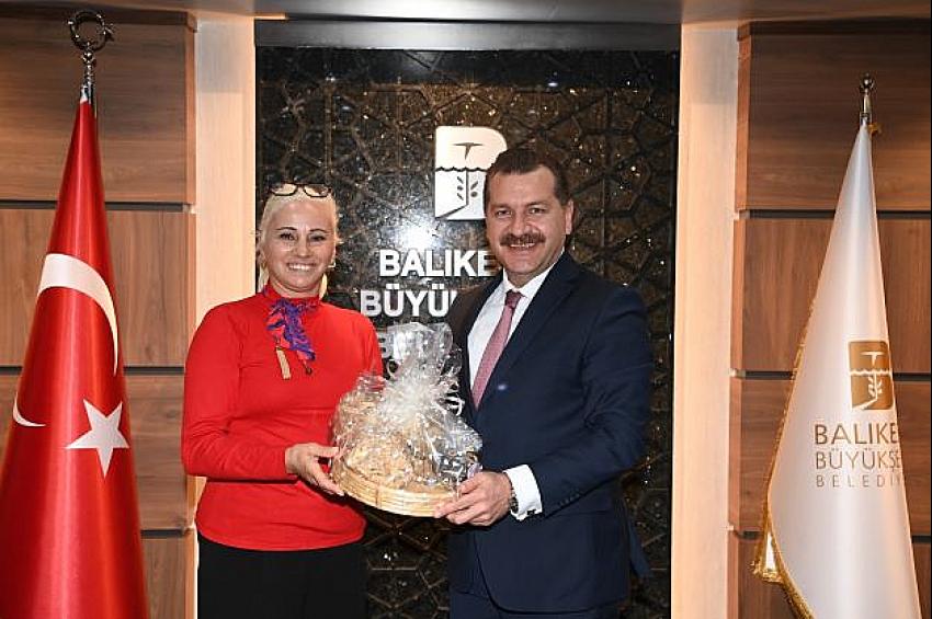 Gezi programının ardından; kadınların iş gücüne katılımını sağlayan kooperatiflere büyük önem veren Balıkesir Büyükşehir Belediye Başkanı Yücel Yılmaz, S.S. Gönen Merkez Tuzakçı Hasanbey Tarımsal Kalkınma Kooperatifi Başkanı Berrin Yetkin Var ve üyelerini makamında ağırladı. Büyükşehir Belediyesi ile kooperatifin birlikte gerçekleştirecekleri “Tarlada sıfır atık” projesi hakkında ilgili personelin de katılımıyla kooperatif üyeleriyle görüşen Başkan Yücel Yılmaz, kadın girişimcilere her zaman destek olmaktan memnuniyet duyacaklarını söyledi. Kooperatif üyeleri, kendilerine her konuda destek olan Başkan Yılmaz’a teşekkür ettiler.