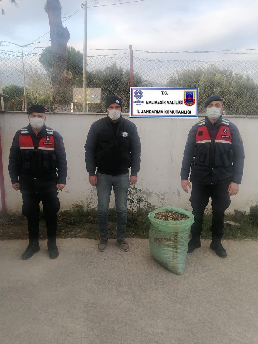Balıkesir İl Jandarma Komutanlığı sorumluluk alanında zeytin hasadı yapılan tüm bölgelerde Jandarma Asayiş, Jandarma Komando timleri ve Çiftçi mallarını koruma ekipleri ile müştereken, vatandaşın tek geçim kaynağı olan zeytine yönelik yapılan hırsızlıkları önlemek ve suçluları yakalamak maksadıyla yapılan önleyici tedbirler kapsamında;