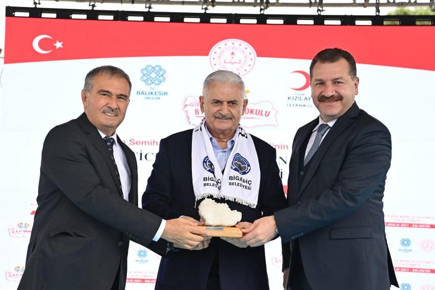 Belediye Başkanı İsmail Avcu konuşmalarında;Sayın Başbakanım;ilçemize teşrifleriniz ile bizlere onurlandırdınız.Ülkemize ve ilçemize sizlerin destekleri ile yapılan hizmetlerinizden dolayı şükranlarımızı sunuyoruz.Bizler yerel yönetim olarak çok çalışmaya söz verdik.Çok çalışacağız.Yeni eğitim öğretim yuvamızın açılışını gerçekleştirmekten mutluluk duyuyorum.Allah birliğimizi ve beraberliğimiz daim etsin.’ Dediler.Törene Hasan ŞILDAK- Balıkesir Valisi Belgin Gökçe UYGUR-Balıkesir Milletvekili,Yavuz SUBAŞI-Balıkesir Milletvekili,Mutlu Aydemir Balıkesir Milletvekili,Mustafa Canbey Balıkesir Milletvekili, , Yücel YILMAZ-Balıkesir Belediye Başkanı, Kıd.Alb. Tarık HEKİMOĞLU-Balıkesir İl Alay Komutanı ,Hasan Onar-Balıkesir İl Emniyet Müdürü,Vahdettin ÇİFTÇİ-Başıkesir Akparti İl Başkan Vekili,Mehmet Halis AYDIN-Bigadiç Kaymakamı,İsmail AVCU-Eski Emniyet Genel Müdürü Celal Uzunkaya,Bigadiç Belediye Başkanı, Neşet AKBIYIK-Bigadiç Akparti İlçe Başkanı,Bigadiç ProtokolüBalıkesir İl Teşkilatı ve Bigadiç iİçe Teşkilatı,Okulu yapımını sağlayan yardımsever Koç Ailesi ve vatandaşlarımız katıldılar.Daha sonra ziyaretleri kapsamında, Bigadiç Belediyesini ziyaret ederek projelerimiz hakkında bilgiler aldılar. Bigadiç Yeşilli camiinde Cuma namazı sonrası esnafı ziyarete ederek,vatandaşlarımız ile biraraya geldiler.Bigadiç ilçesi girişinde yeni oluşturulan 4 Eylül parkı meydanında çay içip vatandaşlar ile sohbet ettiler.