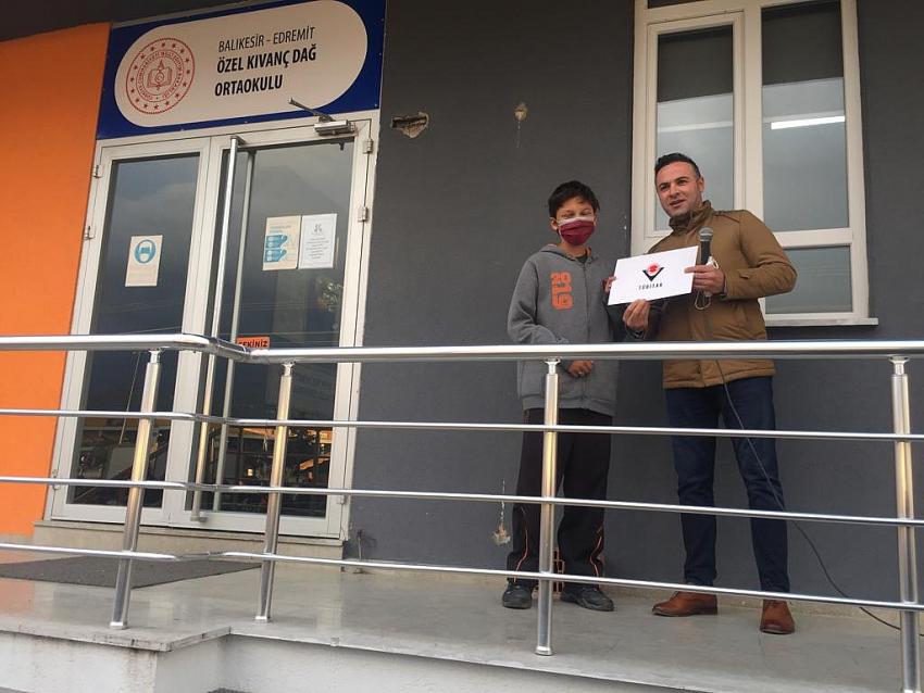 TÜBİTAK tarafından ortaokul öğrencileri arasında düzenlenmiş Değerler Eğitimi alanında 3. olan Özel Kıvanç Dağ Ortaokul öğrencilerinden Umut Can Coşkun belgesini Kıvanç Dağ Okulları kurucusu Kıvanç Dağ’ın elinden aldı.