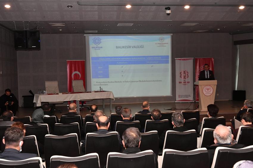 Bağımlılıkla mücadele kapsamında kurumlar arası koordinasyonu sağlamak ve toplumda bağımlılıkla mücadele farkındalığı oluşturmak amacıyla yapılan çalışmaların değerlendirildiği toplantıda Halk Sağlığı Hizmetleri Başkanı Uz. Dr. Refik Budak kurulun 2021 yılındaki çalışmalarıyla ilgili sunum yaptı. Sunumda, madde kullanımı açısından risk oluşturan metruk binalarla ilgili sayılardan okul çevrelerinde alınacak önlemlere, park ve rekreasyon alanlarının aydınlatılmasından okul çevrelerine güvenlik kamerası kurulması gibi birçok konu hakkında ayrıntılı bilgiler verildi.