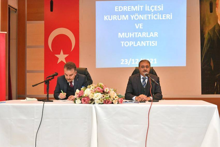 İlçedeki sorunların ve bunun yanında  taleplerin görüşüldüğü toplantıda mahalle muhtarları kendilerini bir araya getirerek onları dinleyen Vali Şıldak’a Edremit İlçesindeki kapsamlı programı için teşekkür ettiler.