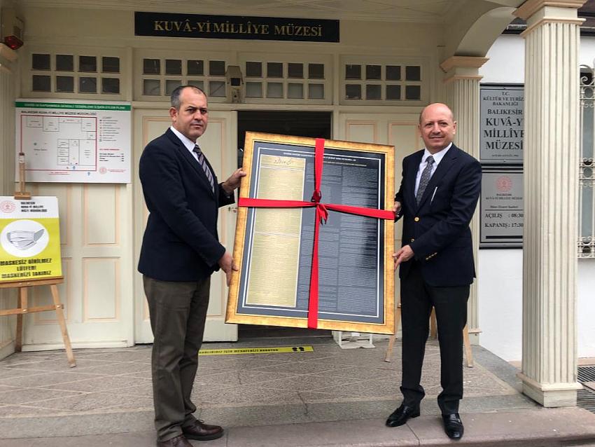 Çelik ziyareti sırasında Mehmet Akif ERSOY’un 23 Ocak 1920 tarihinde Zağnos Paşa Camii’nde vermiş olduğu vaazın ilk yayınlandığı ilk yer olan İzmir’e Doğru Gazetesi’nın bir nüshası ile Türkçe mealinin yazılı olduğu çerçeveyi, Müze Müdürü Aytekin Yılmaz’a teslim etti.