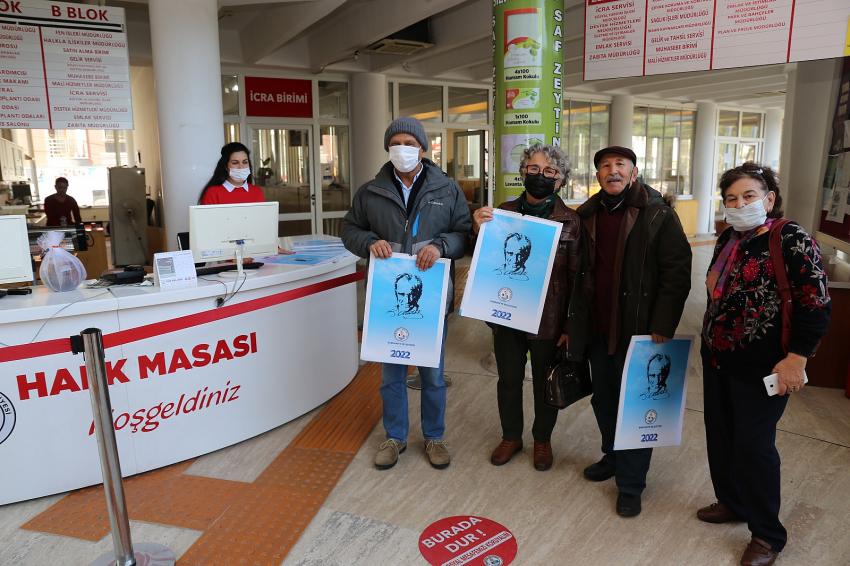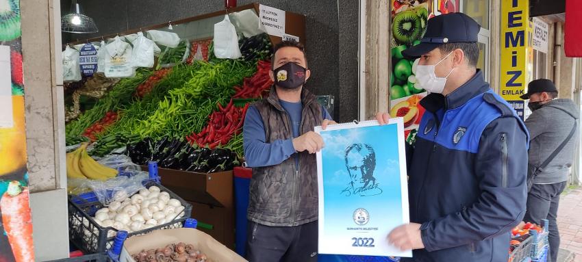 Burhaniye Belediye Başkanı Ali Kemal Deveciler, Ulu Önder Gazi Mustafa Kemal Atatürk’ün en güzel resimlerinden oluşan 2022 duvar takvimini, Burhaniye esnafına yılbaşı hediyesi olarak dağıttı.